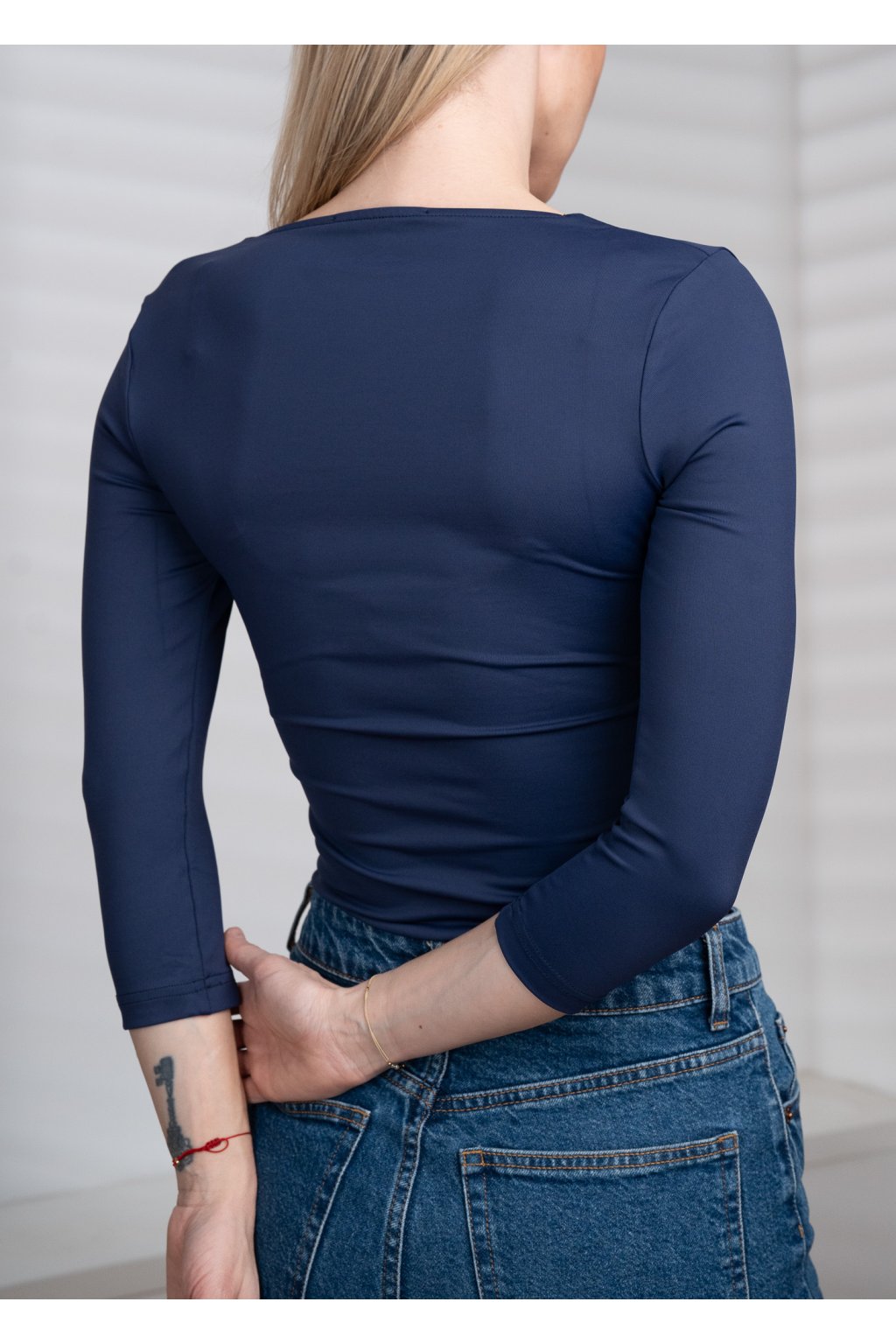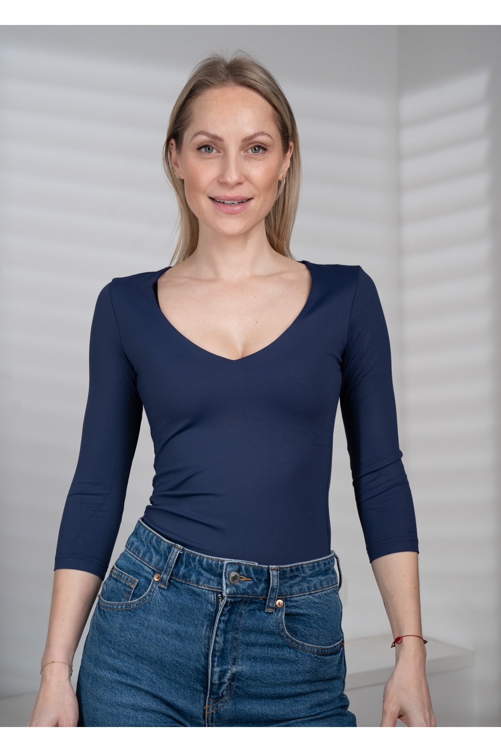 Tričko s hlubokým výstřihem do V, 3/4 rukáv - modrá - námořnická