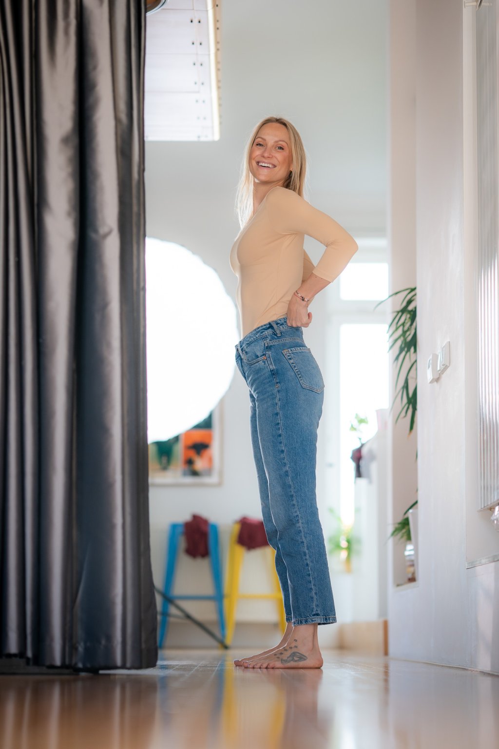 - rovný střih – obepínající postavu, vhodný pro štíhlé a pro zastrčení do kalhot