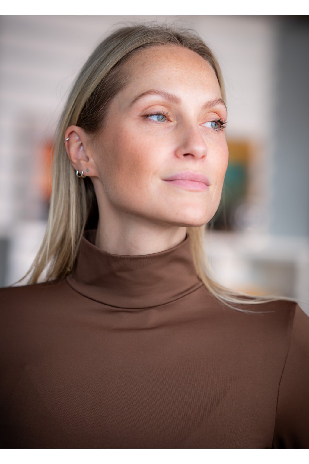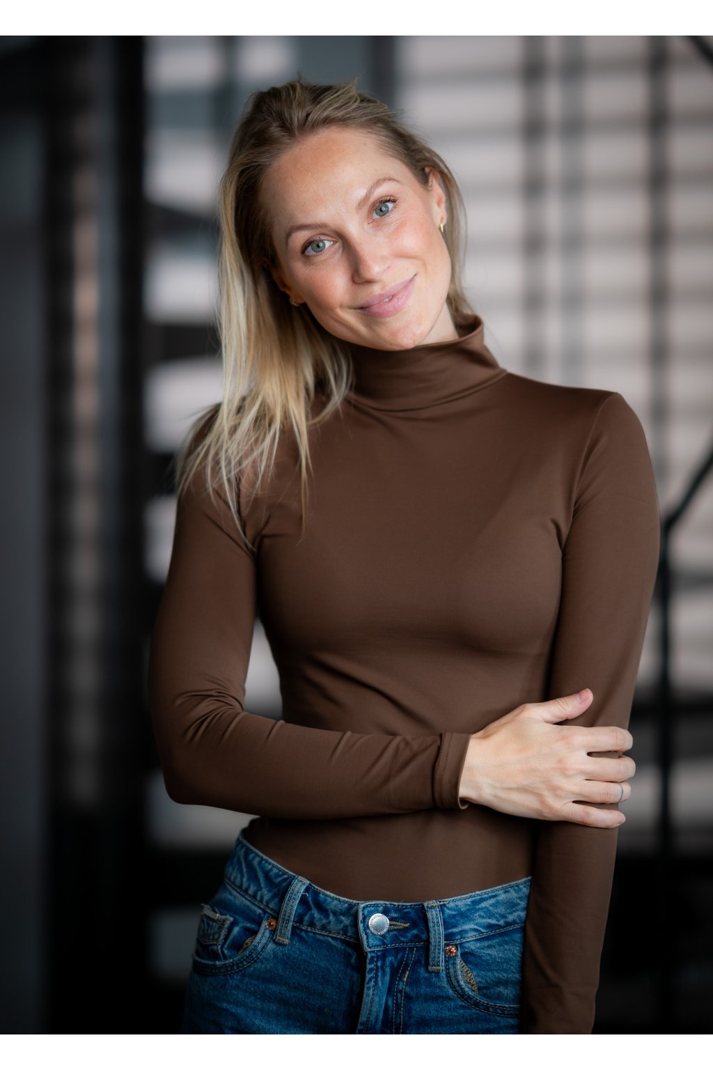 Tričko se stojáčkem, dlouhý rukáv - hnědá - kakaová