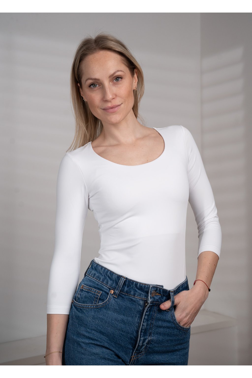 Tričko se středním kulatým výstřihem, 3/4 rukáv - bílá