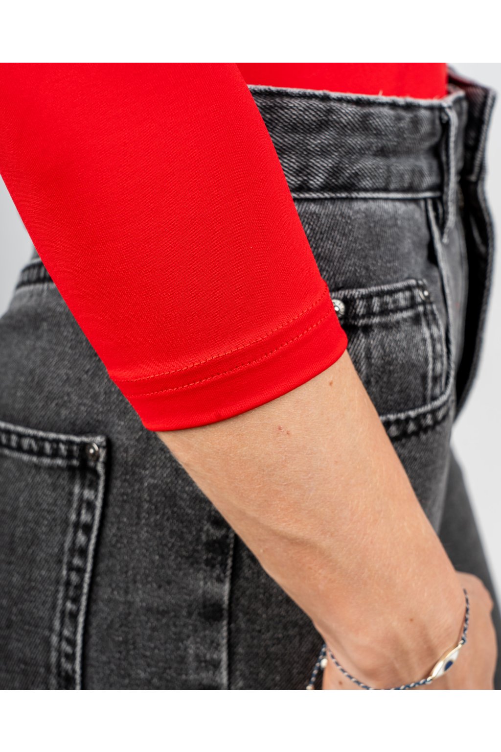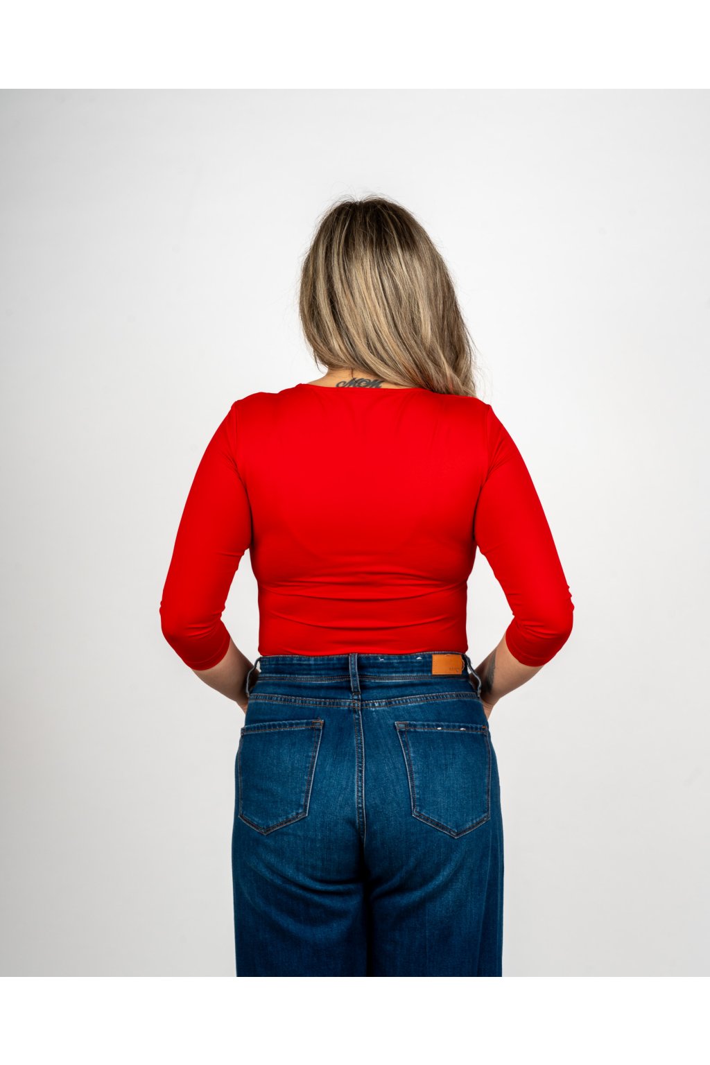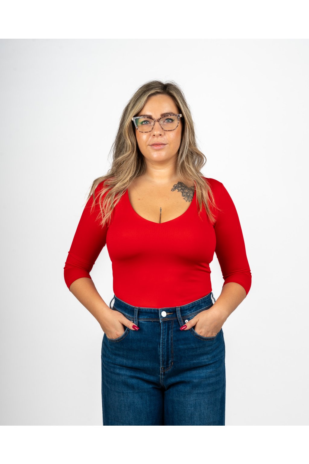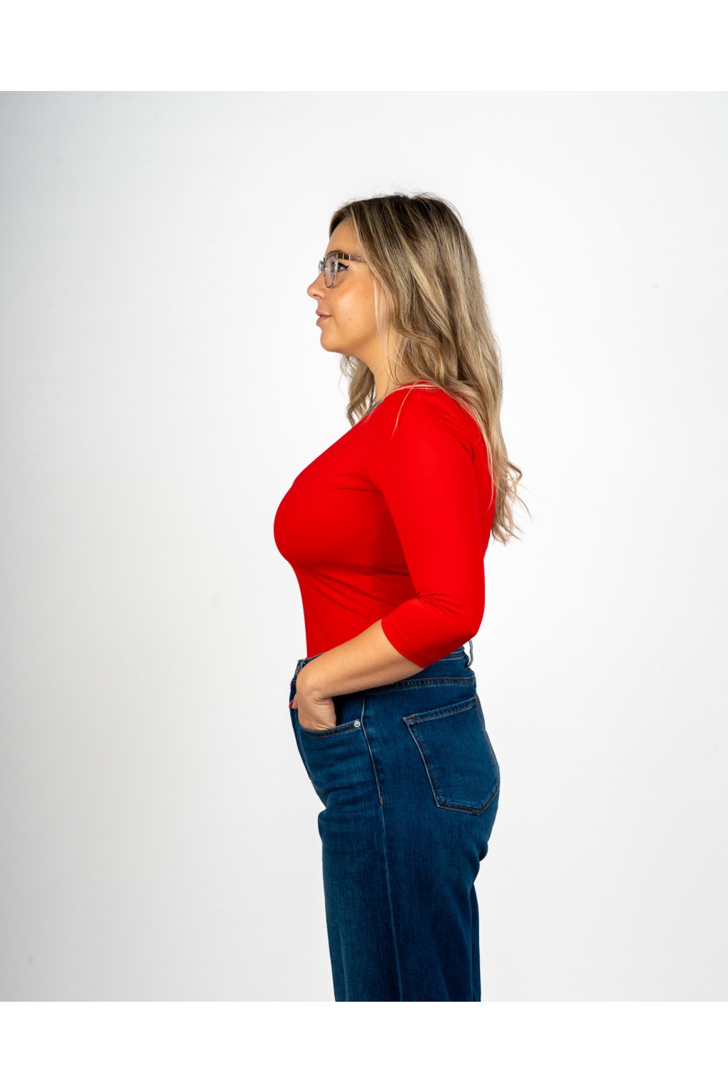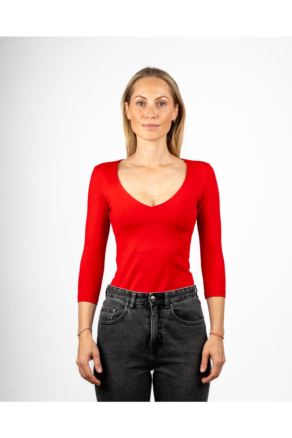 Triko s hlubokým výstřihem do V, 3/4 rukáv - červená